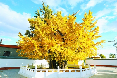 顺义区牛栏山镇北孙各庄村,有一对树龄超过千年的“夫妻”古银杏树,眼下树叶全部金黄,正是最佳观赏期。杨鸽摄