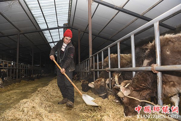 在巴尔格勒津村“新疆褐牛养殖合作社”,村民艾尼瓦尔·亚森在给牛喂食(1月21日摄)。艾尼瓦尔·亚森在合作社打工,每个月的工资是2000元。该合作社由“访惠聚”工作队帮助成立,目前共吸纳7名社员,有70头牛,牛肉及奶产品等由合作社统一销售。