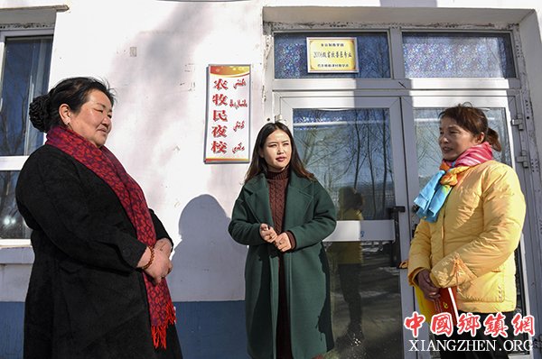在巴尔格勒津村村委会,叶彩萍(右)和马玲珍(左)向前来为牧民授课的教师木勒得尔·巴合别尔干了解教学情况(1月22日摄)。