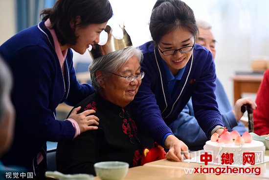 2019年2月15日,沈阳和平区居家养老服务中心的90后养老护理工在为老人过生日。(图片来源:视觉中国)