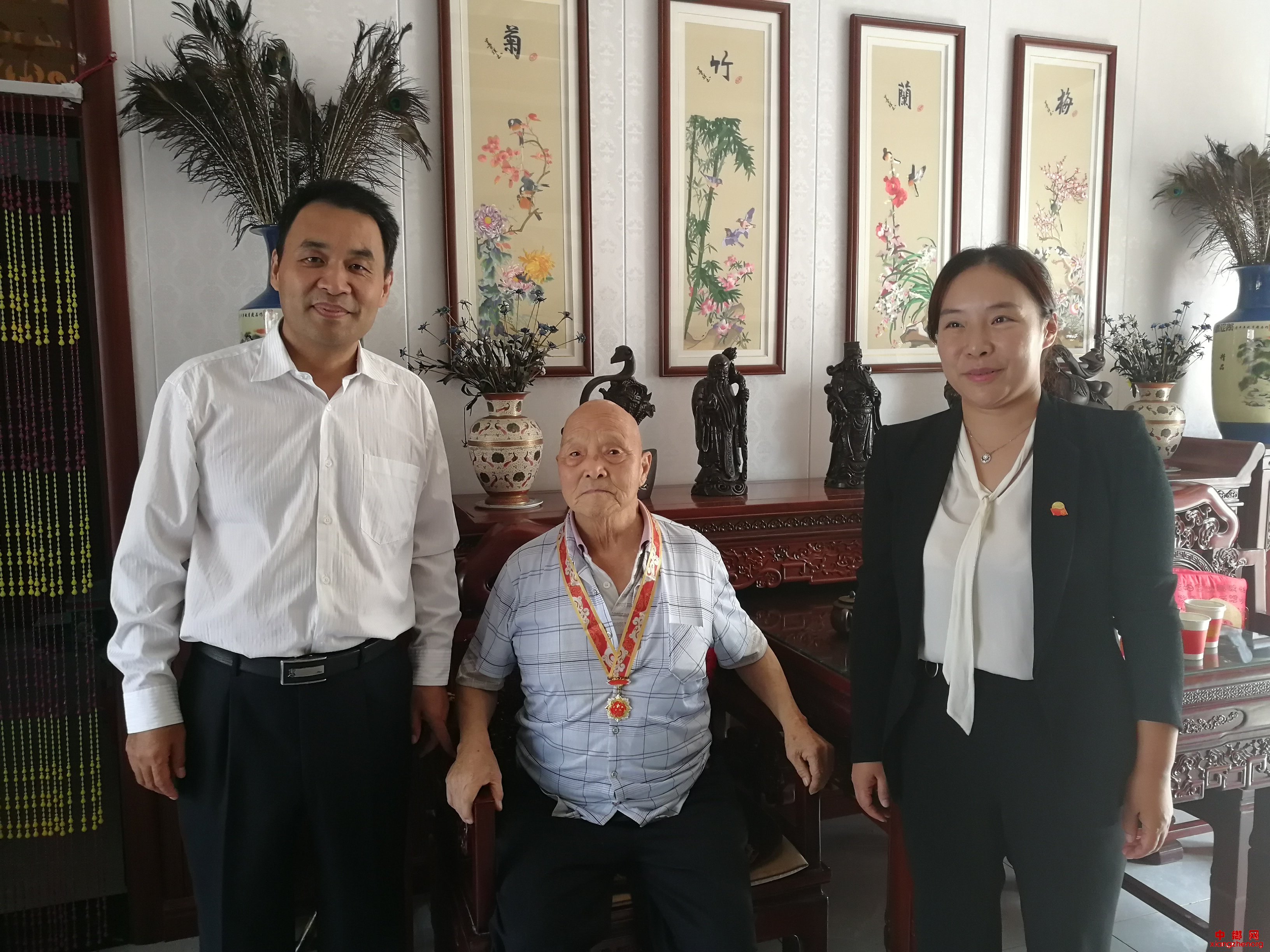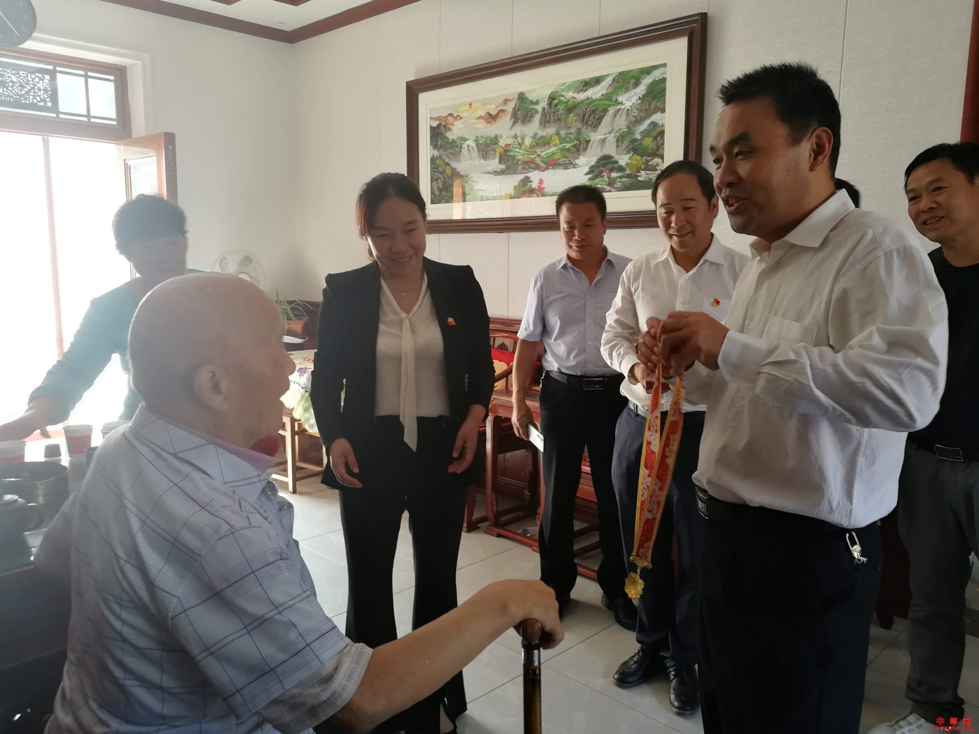 回溯往昔,致敬老兵。在新中国成立70周年到来之际,9月30日上午,渭南市华州区人大常委会主任王西峰在大明镇党委书记戴艳华的陪同下,深入大明镇赵家村、李岩村看望慰问了赵振杰和李如斌两位建国前入伍的老兵,并亲自为他们佩戴了新中国成立70周年纪念徽章。