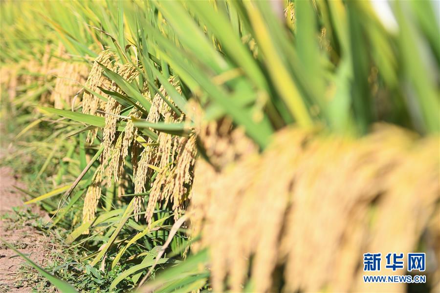 这是第三代杂交水稻新组合试验示范衡南基地测产现场待收割的水稻(10月21日摄)。 新华社记者 陈泽国 摄