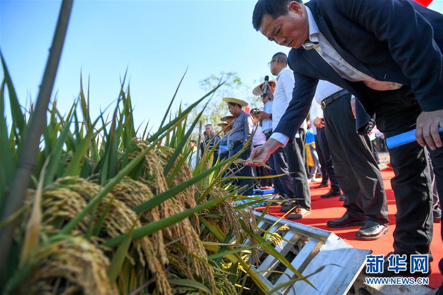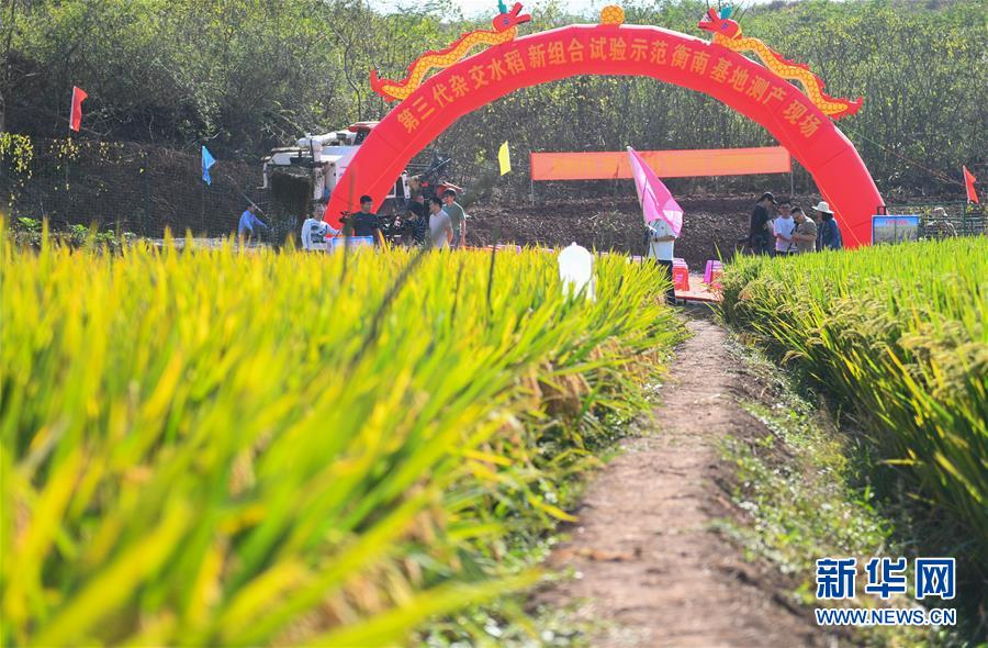 这是第三代杂交水稻新组合试验示范衡南基地测产现场(10月21日摄)。 新华社记者 陈泽国 摄
