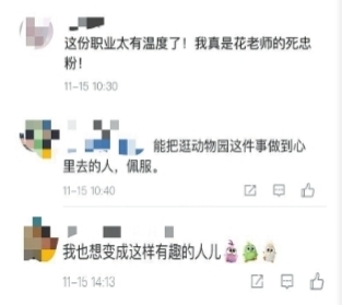 在他的个人微博下,有不少迷妹表达了对他的欣赏和热爱,还有很多网友表示因为他开始喜欢上逛动物园,记者近日和这位武汉伢“花蚀”联系上了。