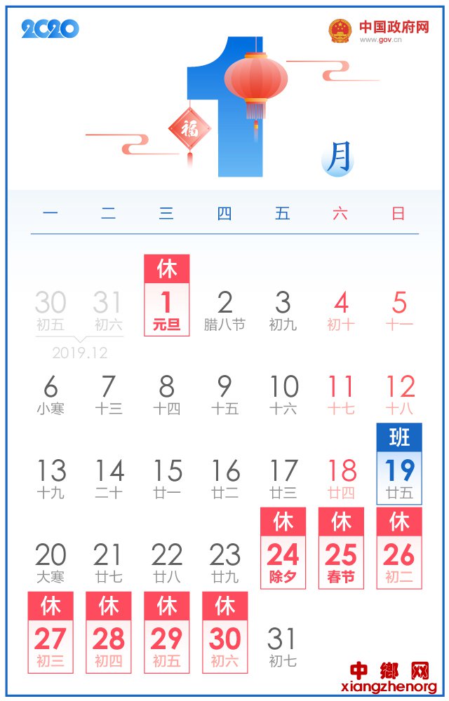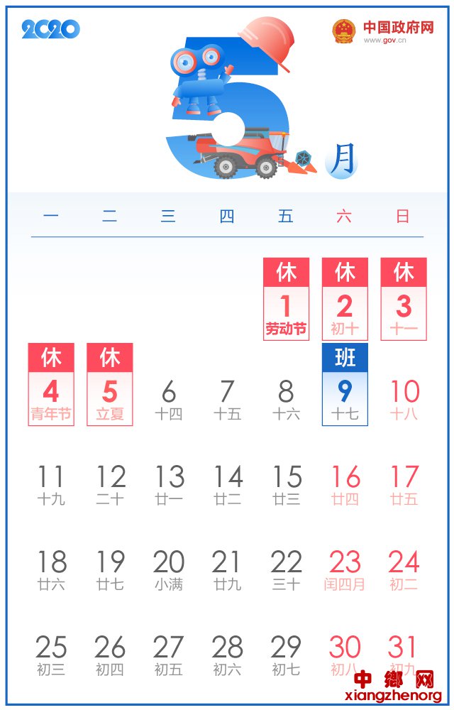 五一休5天,十一休8天,2020年放假安排来了!中国政府网带你一图看懂。