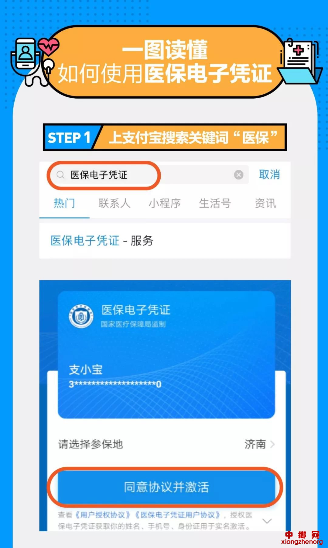 在支付宝首页搜索“医保电子凭证”,同意领取并经过刷脸认证后,即可一键将凭证放入支付宝“卡包”,今后刷手机就能轻松完成医保支付。目前使用该项服务,还能得到支付宝随机立减红包和蚂蚁森林能量。