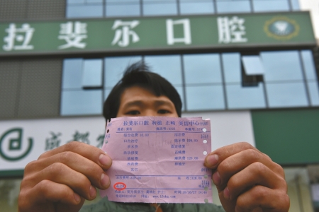 26岁的小姜在成都工作,住在姐姐家。一颗紧靠尽头牙的左下牙把小姜折磨了近一年,平日他只是弄点含片“对付对付”。10月27日,小姜终于决定“来个彻底根治”。当天下午1点过,他问姐姐要了300块钱后,来到位于高新区府城大道的拉斐尔口腔医院。