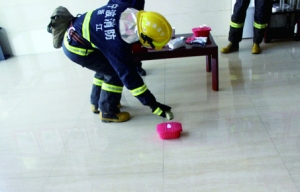 消防员将自发热食品的发热包放入矿泉水瓶内,模拟密闭容器内是否会发生危险,当实验员将水慢慢倒入矿泉水瓶放在地上静置数秒后,该矿泉水瓶迅速被膨胀扩大,同时底部被高温高压灼穿喷出高压蒸汽。