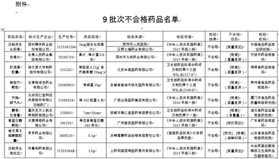 近日,国家食药监总局通告了9批次药品不合格情况,标示为深圳翰宇药业股份有限公司、齐鲁制药有限公司等9家企业生产的9批次药品不合格。