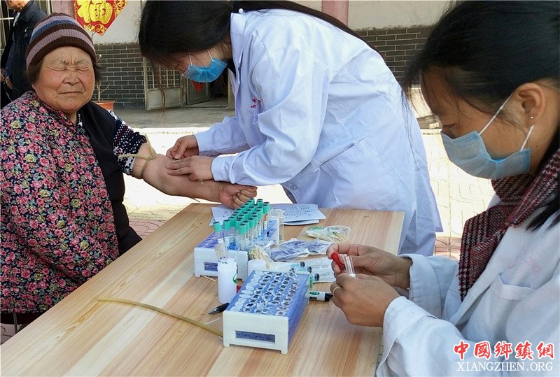 郯城县马头镇医院的医务人员正在为老人进行抽血化验。