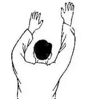 站立或仰卧,两手十指交叉,放在头后部(枕部),先使两肘尽量内收,然后再尽量外展。