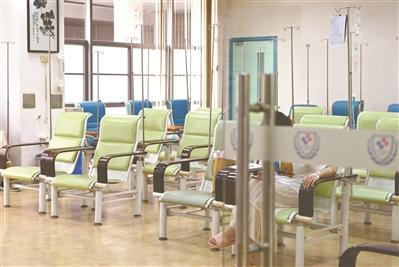 不少输液室患者屈指可数