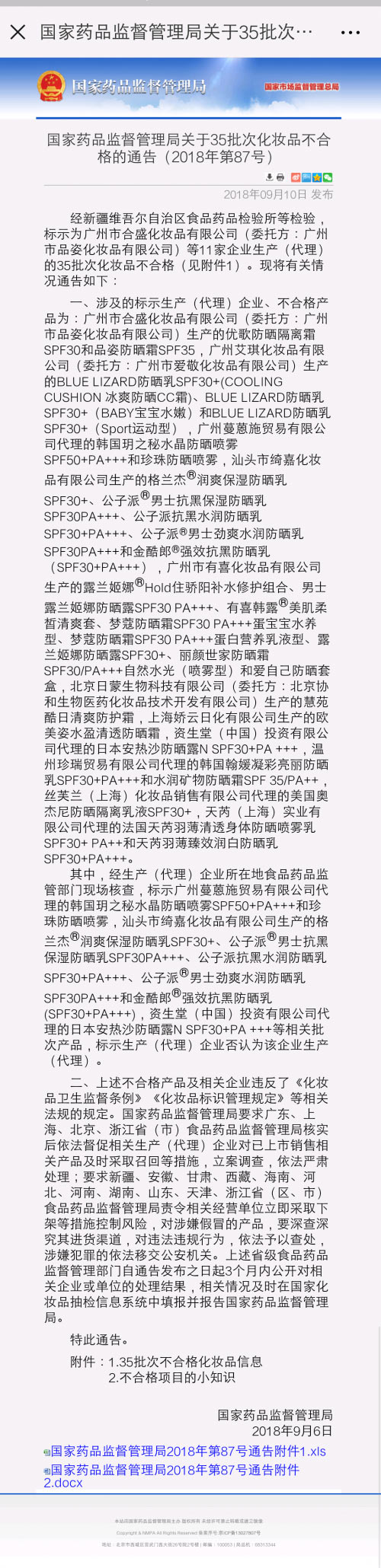 国家药品监督管理局已要求广东、上海、北京、浙江省(市)食品药品监督管理局核实后依法督促相关生产(代理)企业对已上市销售相关产品及时采取召回等措施,立案调查,依法严肃处理;要求新疆、安徽、甘肃、西藏、海南、河北、河南、湖南、山东、天津、浙江省(区、市)食品药品监督管理局责令相关经营单位立即采取下架等措施控制风险,对涉嫌假冒的产品,要深查深究其进货渠道,对违法违规行为,依法予以查处,涉嫌犯罪的依法移交公安机关。上述省级食品药品监督管理部门自通告发布之日起3个月内公开对相关企业或单位的处理结果,相关情况及时在国家化妆品抽检信息系统中填报并报告国家药品监督管理局。(综编自国家药监局官网)