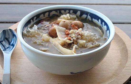 原料:龙眼肉15克、莲子肉50g、鸡蛋两只、生姜两片、南枣四枚、盐少许。