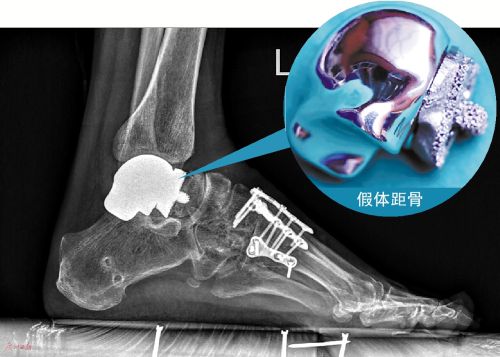如果踝关节发生严重的骨折乃至坏死缺损怎么办?常规的方法是进行踝关节融合,但伤口长好以后,踝关节部位的骨头成了一个固定的整体,就不能再活动。现在,医生在进行了人工踝关节整体置换尝试的基础上,利用3D打印技术,将生物材料打造成踝关节部分骨骼的形状,与伤者体内残留的骨骼严密接驳,“拼”回一个完整的踝关节,保留活动的关节功能。