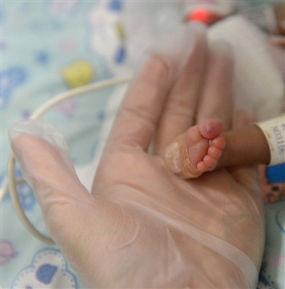 大双1370克,上周去看的时候,她刚刚从一次呼吸暂停中挺了过来,“发生呼吸暂停是非常常见的。”更令人揪心的,是仅710克的小双。这个在胎盘里把养分“让”给姐姐的小家伙,脚掌只有成人拇指般大,整个人只有巴掌大。伴随着呼吸窘迫综合征、凝血功能障碍、腹腔积液等二十几种并发症,小家伙随时有生命危险。