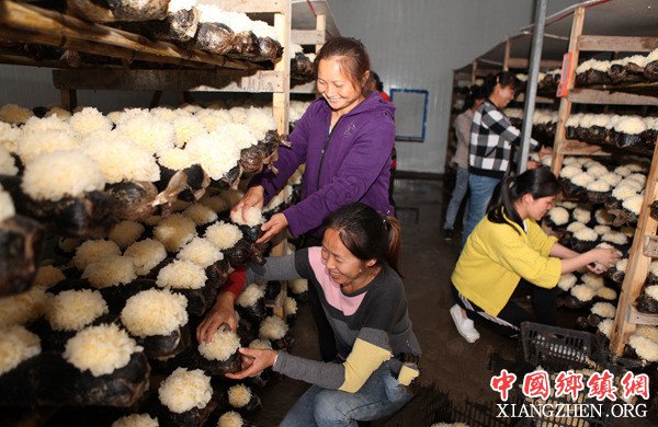 参赛妇女在温室大棚采摘鲜银耳。