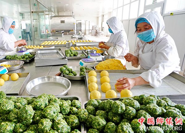 6月5日,工人在玉田县鸦鸿桥镇边家铺村野菜深加工企业车间内制作野菜团子。
