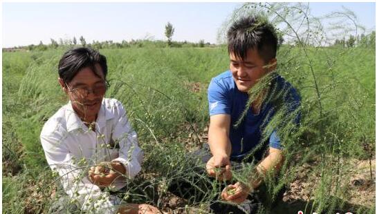 今年春天,陈胜泰采取“公司+基地+农户”发展模式,与农户签订《芦笋标准化生产协议书》,带动更名村30多户村民走上了发展芦笋种植的增收路。