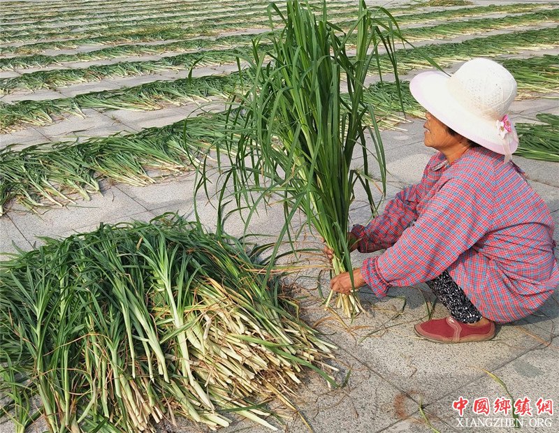 暴晒一天的“致富草”渐渐变色,农民逐一进行扎把方便运输。