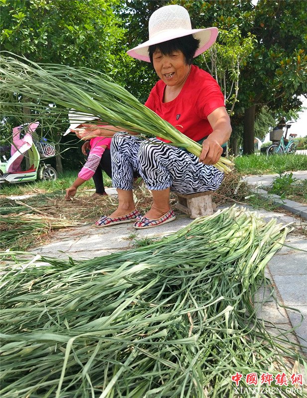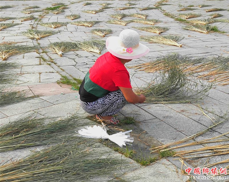 农民把暴晒一个中午的“致富草”进行整理,去掉杂质保留“精品”。