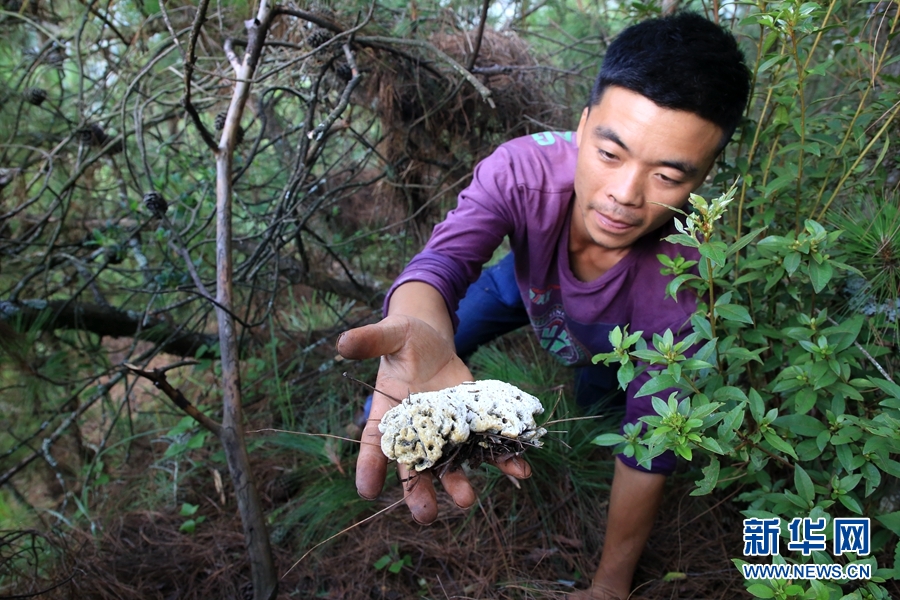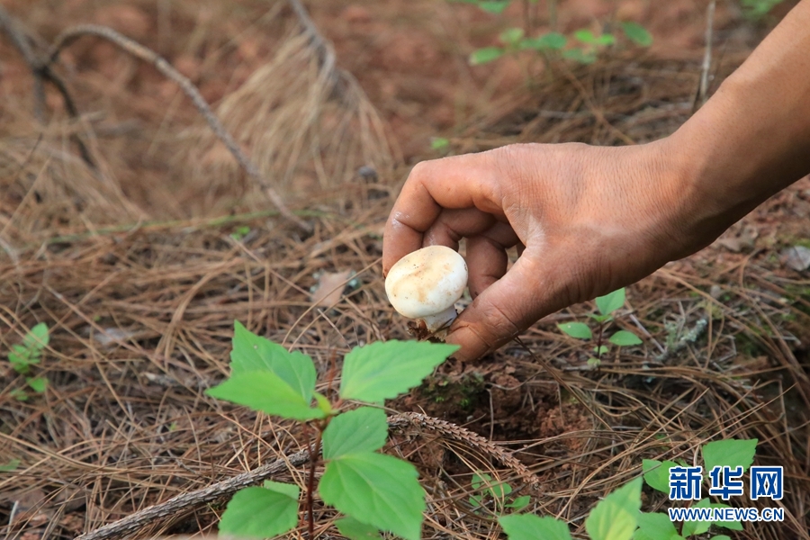 农户在采摘野生菌。新华网 丁凝 摄