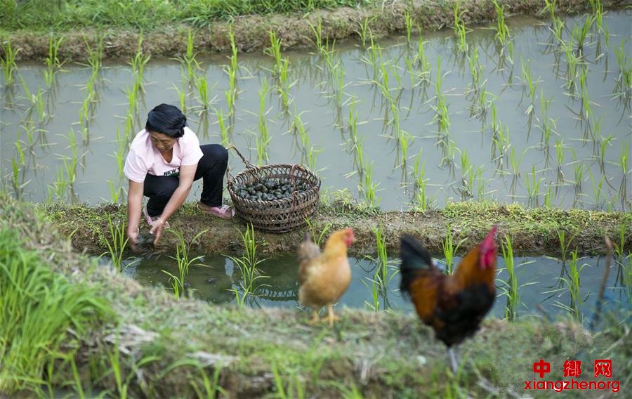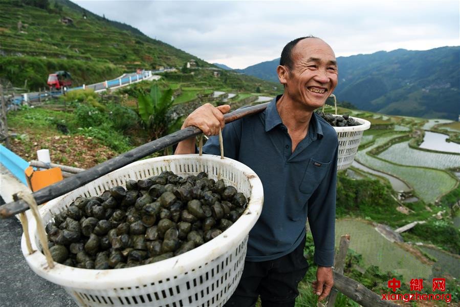 今年3月以来,贵州省从江县启动财政专项扶贫资金,结合当地梯田环境,因地制宜,在加榜乡加车、党扭、加页等村实施田螺养殖项目。