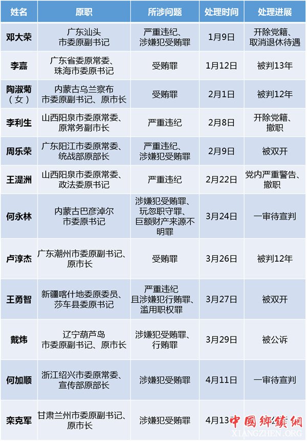①2018上半年"打虎战报":近10名省部级及以上级别干部被查