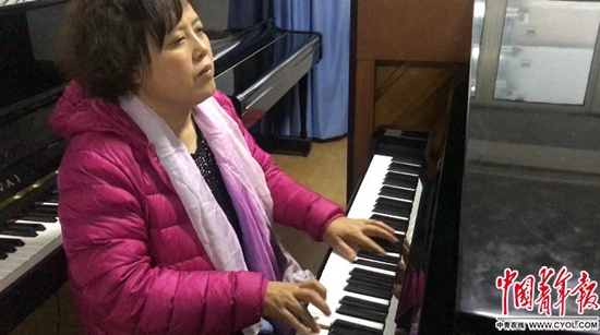 调音师陈燕在弹奏钢琴。中国青年报·中国青年网见习记者 张艺/摄