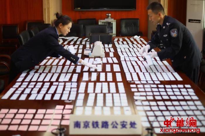 资料图:12月10日,南京铁路公安处民警清点缴获的假火车票。中新社记者 泱波 摄