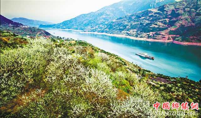 3月21日,巫山县曲尺乡,李花在长江两岸绽放。 记者 郑宇 摄