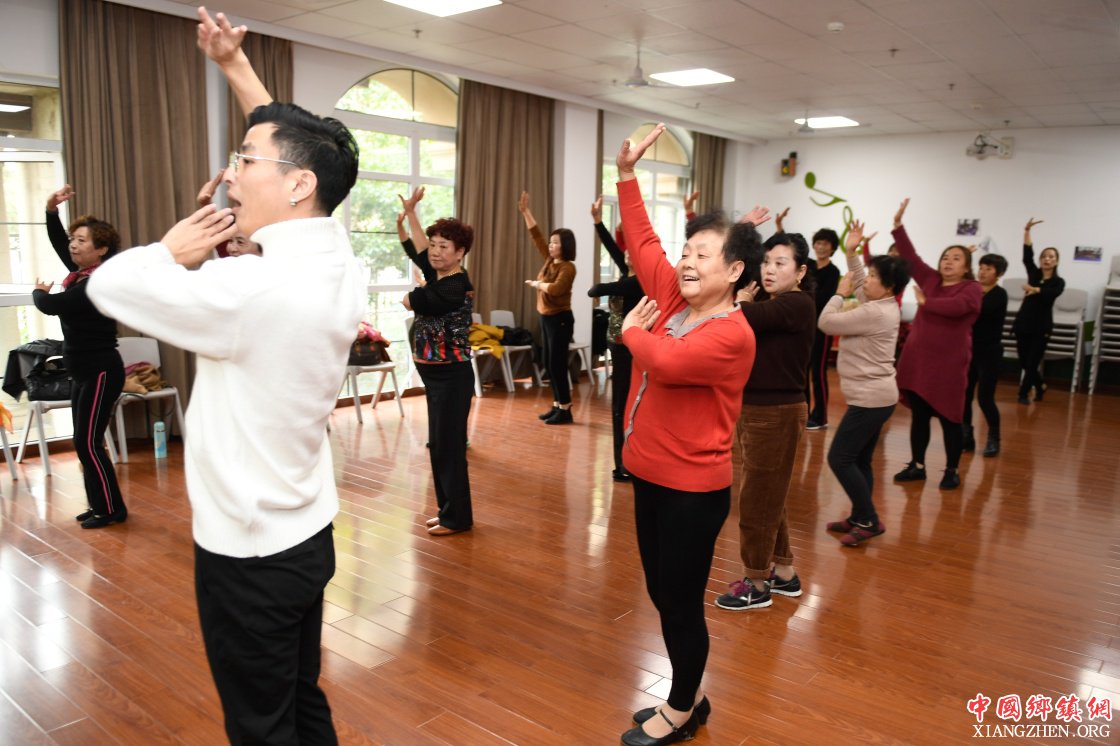 11月14日,在湖州市吴兴区八里店农民社区,居民跟着老师学习舞蹈。