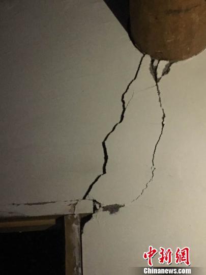 图为震中多加村房屋出现的裂缝 青公宣