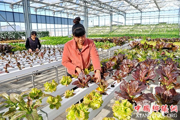 1月11日,农民在河北青县广旺农业专业合作社温室内管理无土栽培蔬菜。