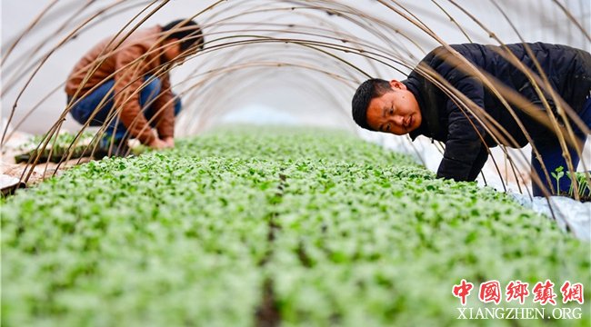 3月6日,重庆市垫江县曹回镇安山村的育苗大棚内,种植大户黄练(右一)在大棚内检查西瓜苗下的发热导线铺设是否达到了要求。