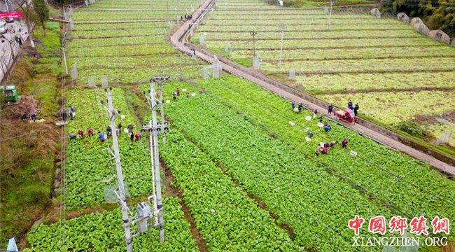 3月6日,重庆市垫江县曹回镇安山村的种植基地内,村民们在新架设的更高标准的农村电网下采收制作榨菜的青菜头
