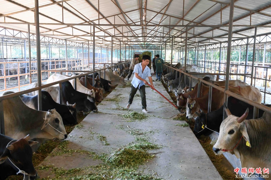12月9日,村民在孟连县芒信镇芒卡村肉牛养殖场给牛添加饲料。