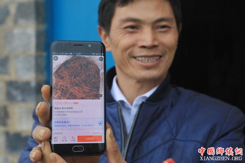 1月8日,付堂径通过手机APP销售红根野蚕豆。