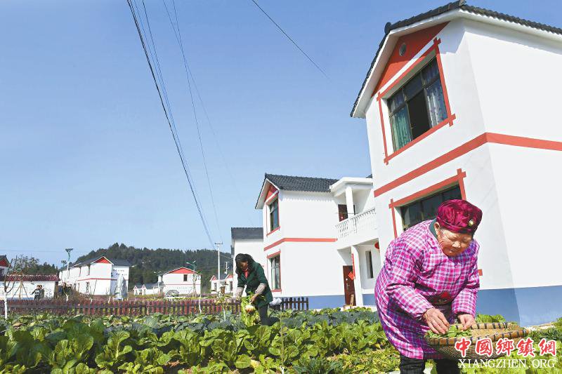 易地扶贫搬迁户在家门口的菜园子采摘蔬菜