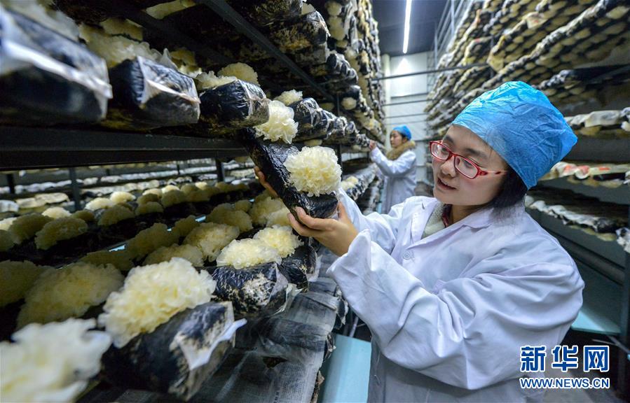 近年来,河北省邯郸市魏县积极调整农业产业结构,大力发展食用菌种植产业,推广“公司+专业合作社+基地+农户”模式,通过项目企业与建档立卡贫困户签订协议,开展食用菌种植项目,为贫困户提供原料和技术,定期回收食用菌产品,带动群众增收致富。新华社记者 王晓 摄