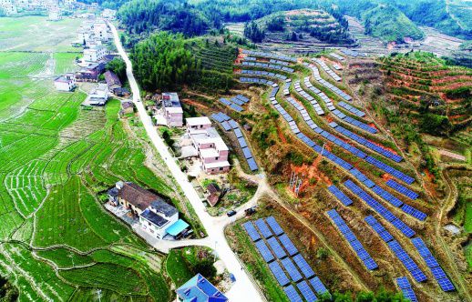 3月30日,俯瞰资兴市州门司镇白筱村光伏扶贫电站。从2017年6月并网发电至今,该电站累计为白筱、水南等9个贫困村集体带来近76万元的收益。截至目前,郴州市442个光伏扶贫项目已发电3700万度,收入3630万元,全部用于公益岗位扶贫、小型公益事业扶贫、奖励补助扶贫。钟镭 朱孝荣 摄影报道