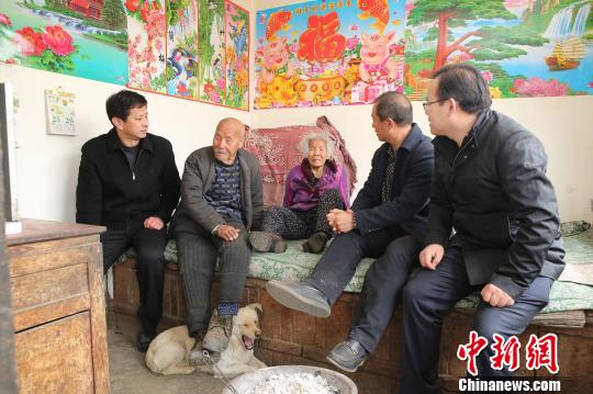 驻村工作组和村干部走访失明老人冯坤夫妻。 孙婷婷 摄