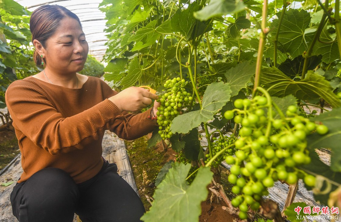 4月24日,在河北省百荣牧业养殖基地,枣强县唐林镇朴庄村村民饲喂扶贫奶牛。 4月24日,河北省枣强县唐林镇李进伯村的农民给葡萄疏果。