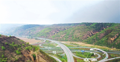 5月5日无人机拍摄的陕西延安洛川县境内包茂高速公路盘道。