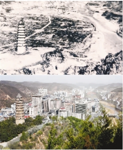 下图为今年4月23日拍摄的延安城。