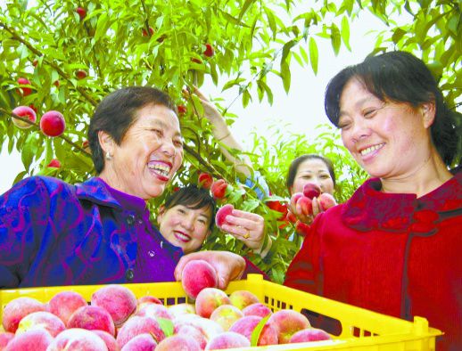 5月30日,新宁县金石镇飞仙桥村5组,游客在采摘早熟脆蜜桃。近年,该县把精准扶贫与发展乡村生态观光产业相结合,引导和扶持农民规模种植葡萄、草莓、桑葚、黄桃、杨梅、红心猕猴桃等特色水果,带动了乡村旅游的发展,促进了贫困农民增收脱贫。郑国华 莫绿云 摄影报道