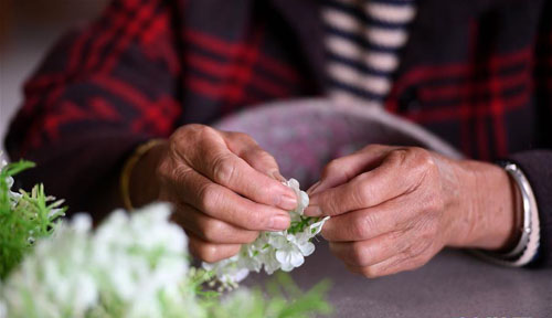 11月26日,在广西柳州市鱼峰区白沙镇水山村就业扶贫车间,村民在制作塑料花。 近年来,广西柳州市鱼峰区大力推进就业扶贫车间建设,通过建设“合作社式”就业扶贫车间,引导贫困户以土地、资金等方式入股参与就业扶贫车间建设,吸引农村闲散富余劳动力就近就业和外出务工返乡创业,实现“挣钱顾家两不误”。 新华社发(黎寒池 摄)