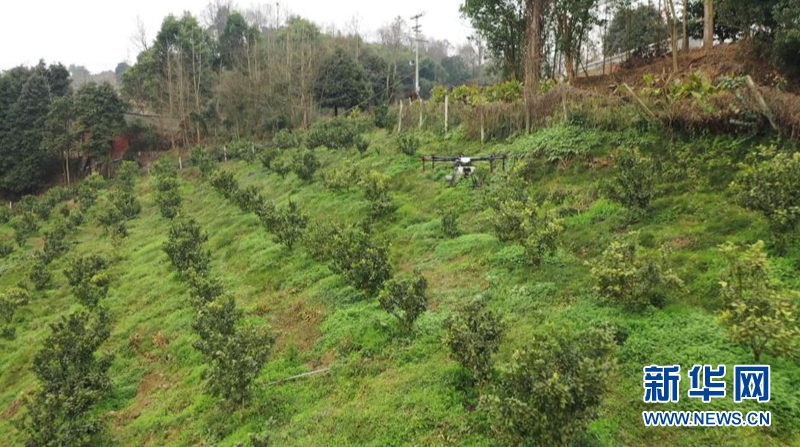 新华网成都2月15日电(胡攀)2月13日,在邛崃市大同镇陶坝村一片果园上方,一架无人机往来盘旋,短短十多分钟,就完成了40多亩砂糖桔的病虫害防护喷洒作业。