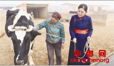 2月28日,内蒙古鄂尔多斯市鄂托克旗巴音布拉格嘎查第一书记脑明其其格(右)来到嘎查的养牛户家,了解饲草料储备情况。