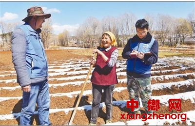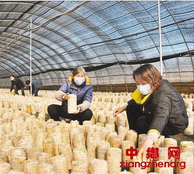 2月26日,河南省淅川县山根村驻村第一书记靳丹淅(右)带领党员志愿者帮助贫困户抢种白玉木耳菌棒。